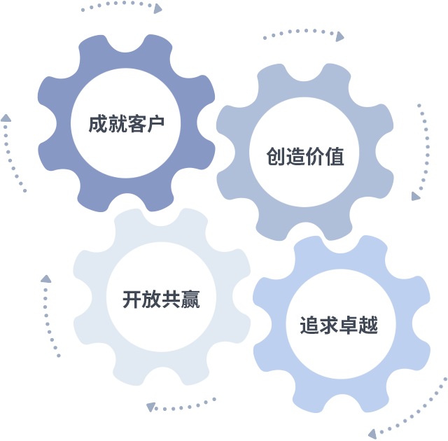 成就客户是一切决策的出发点,创造价值是衡量所有工作的标准,追求卓越是u8国际做事做人的态度,开放共赢是u8国际的格局也是最终的结果。价值观的齿轮环环相扣,推动着组织里的每个人不断向前。